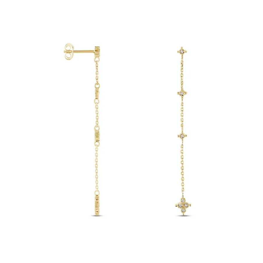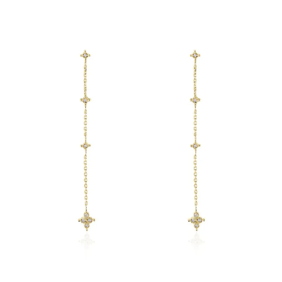 Boucles D’oreilles Pendantes Plaque Or Chaines Forçat Etoiles Oxydes De Zirconium