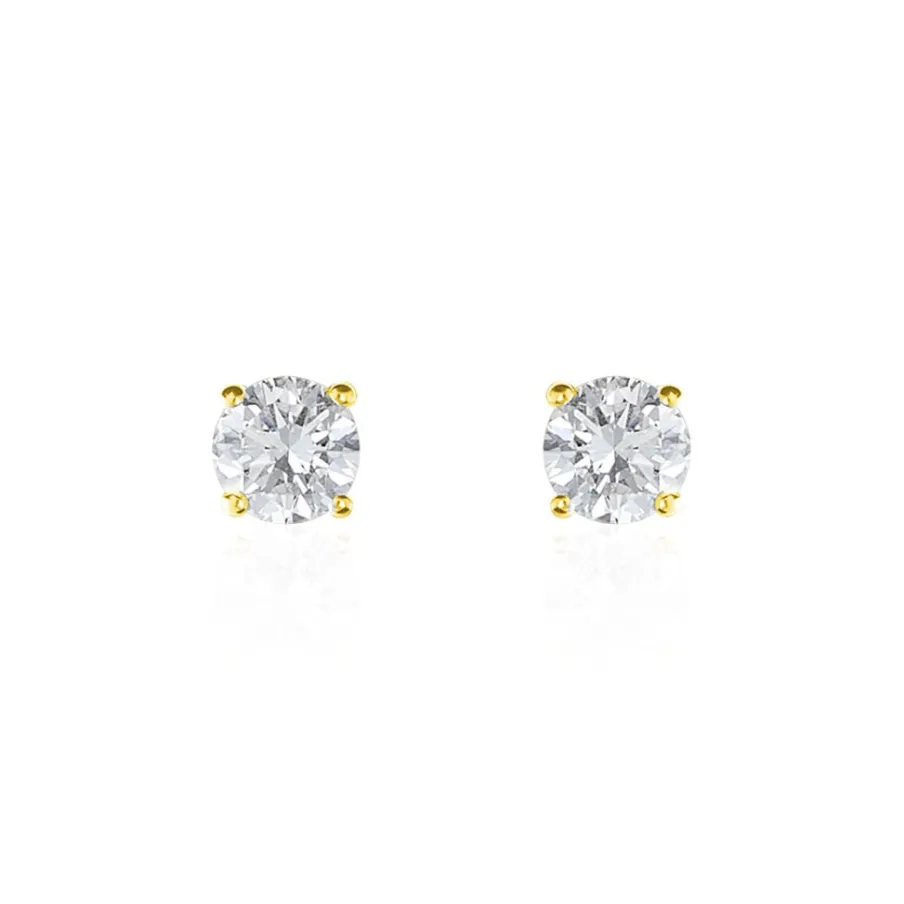 Boucles D’oreilles Or Jaune 750/1000 Puces Diamants Synthetique 0.60cts Sertis 4 Griffes Systemes Alpas