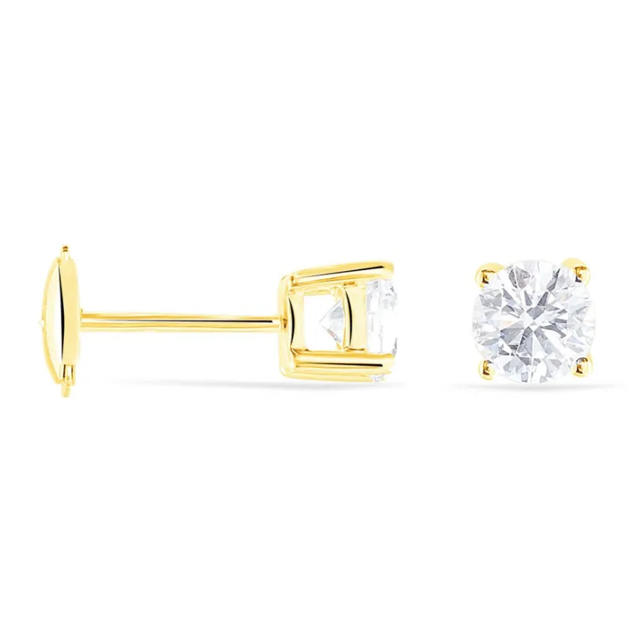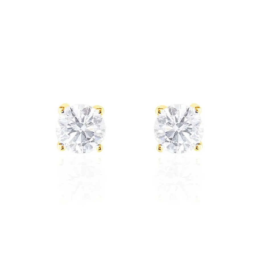 Boucles D’oreilles Or Jaune 750/1000 Puces Diamants Synthetique 1.2cts Sertis 4 Griffes Systemes Alpas