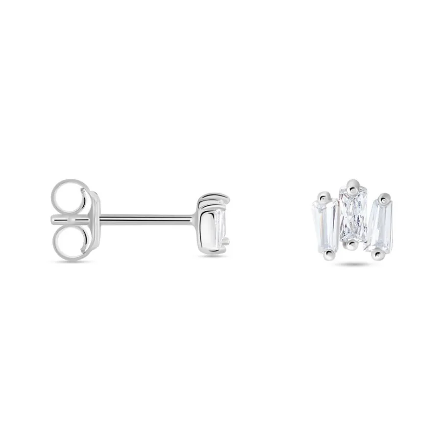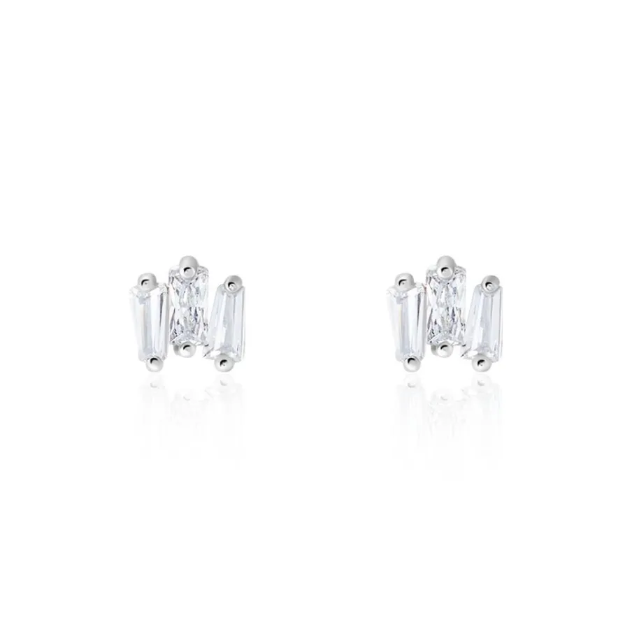Boucles D’oreilles Puces Argent 925/1000 Petites Baguettes Désorganisées Oxydes De Zirconium