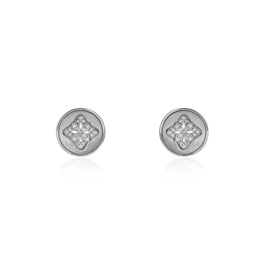 Boucles D’oreilles Argent 925/1000 Nacre Grise Etoile Oxyde