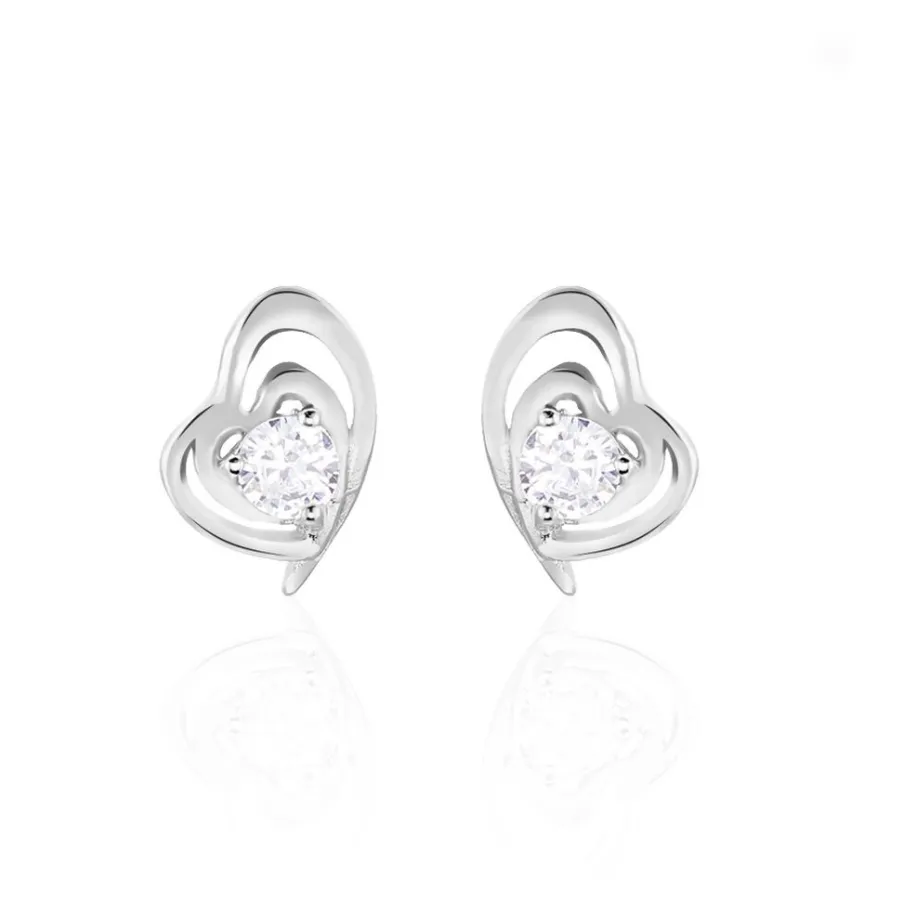 Boucles D’oreilles Puces Argent Blanc 925/1000 Coeurs Avec Oxyde De Zirconium