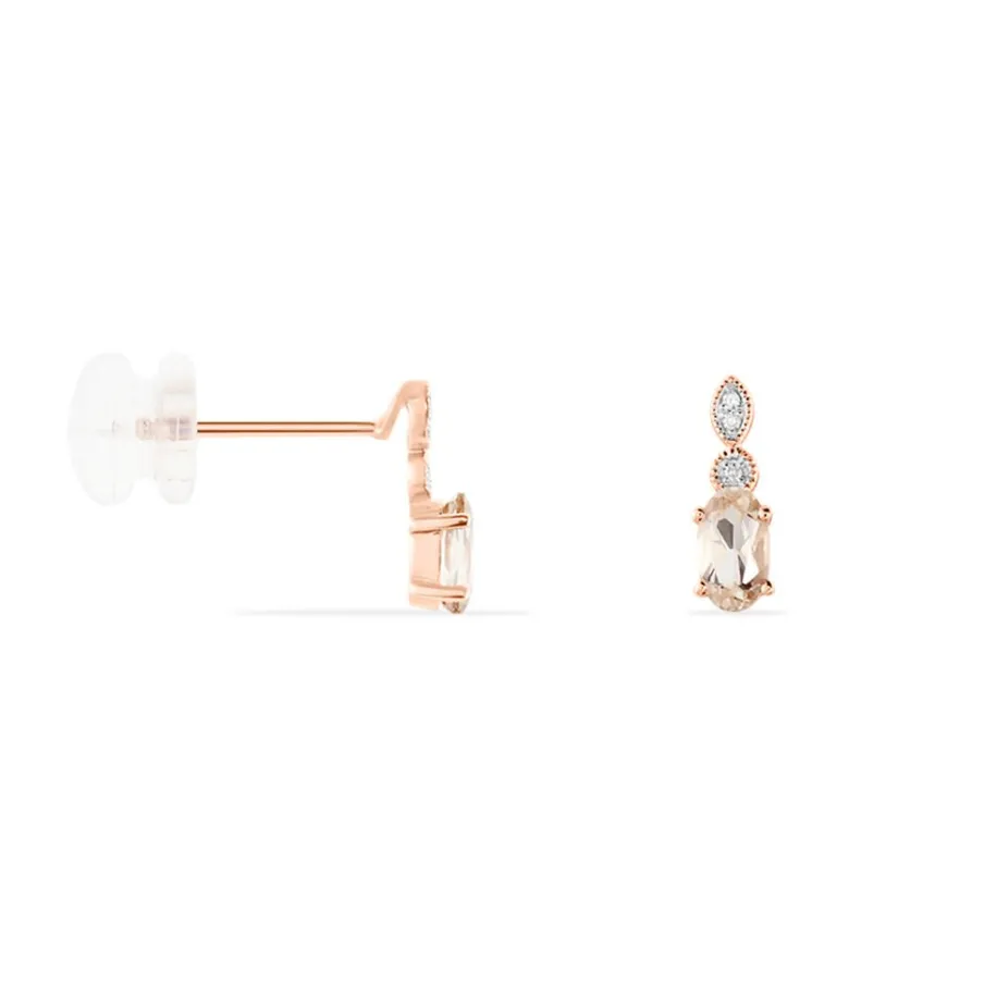 Boucles D’oreilles Or Rose 375/1000 Puces Morganite Centrale Avec Diamants