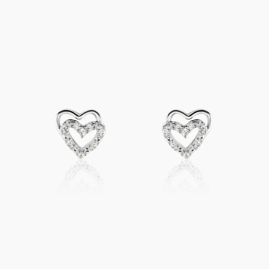 Boucles D’oreilles Puces Argent Blanc 925/1000 Double C艙urs Oxydes De Zirconium