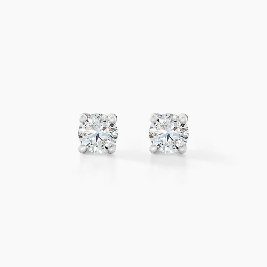 Boucles D’oreilles Or Blanc 375/1000 Puces Diamants 0.15cts Serti 4 Griffes