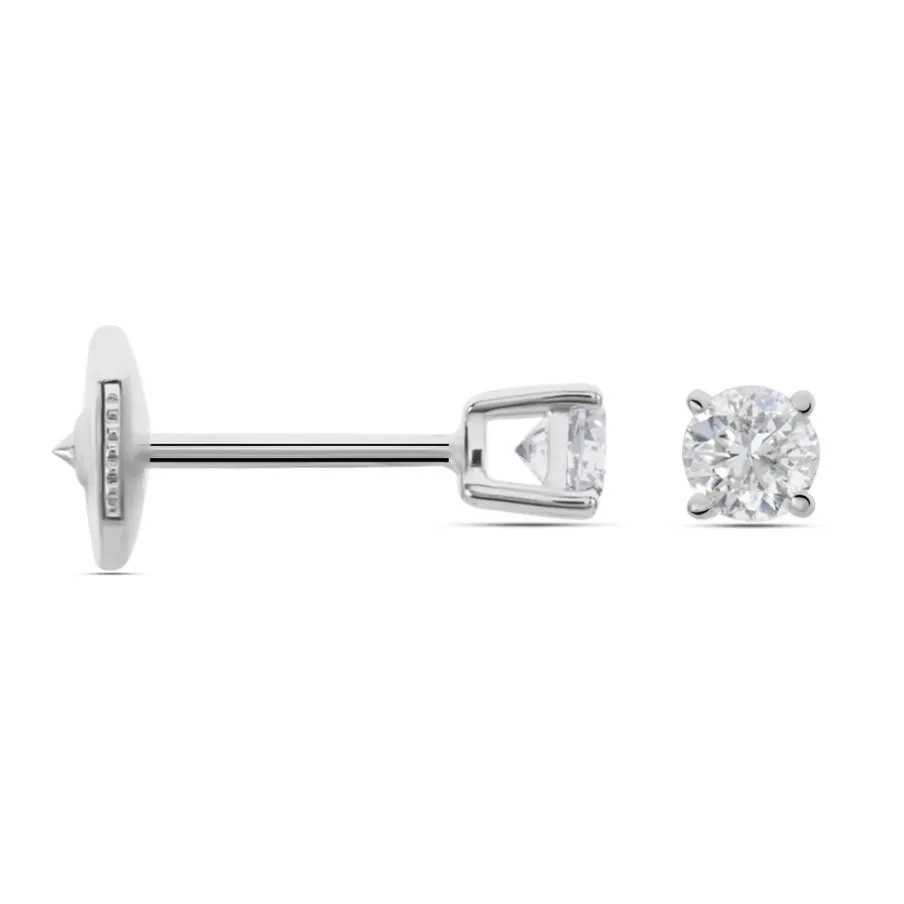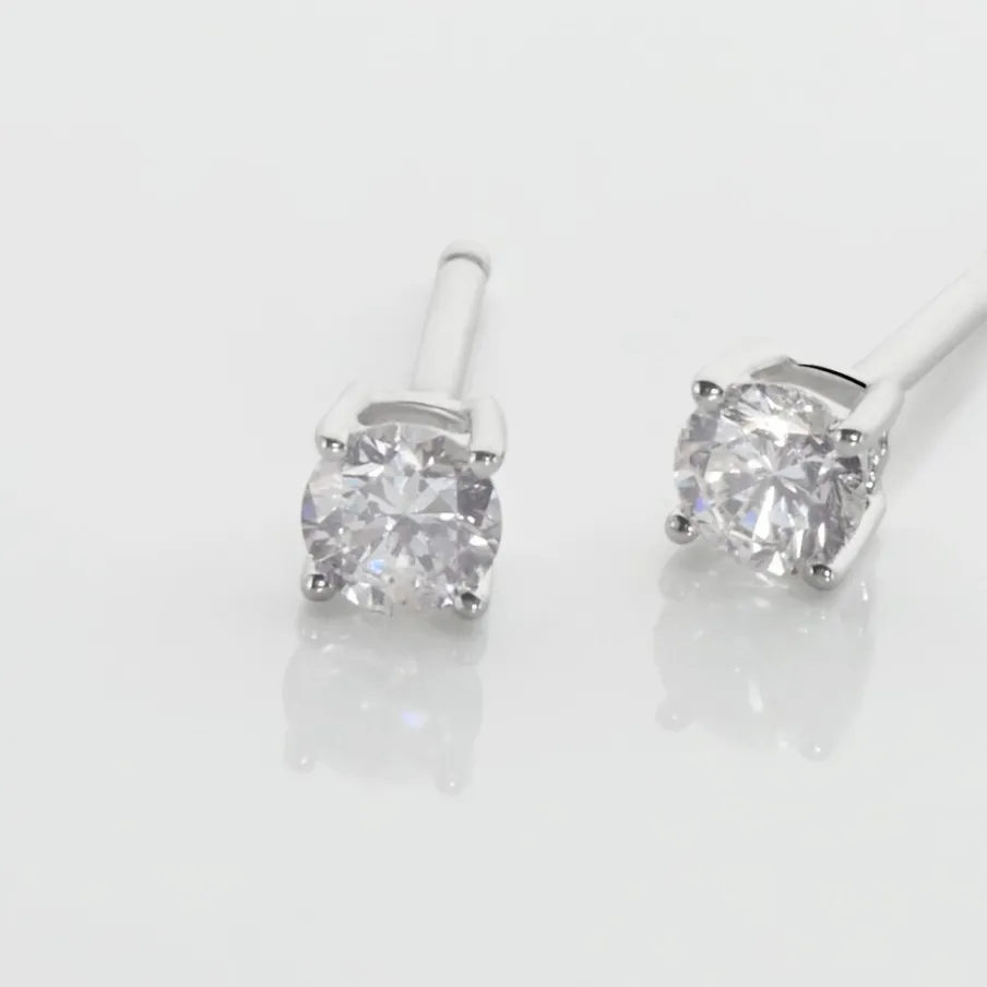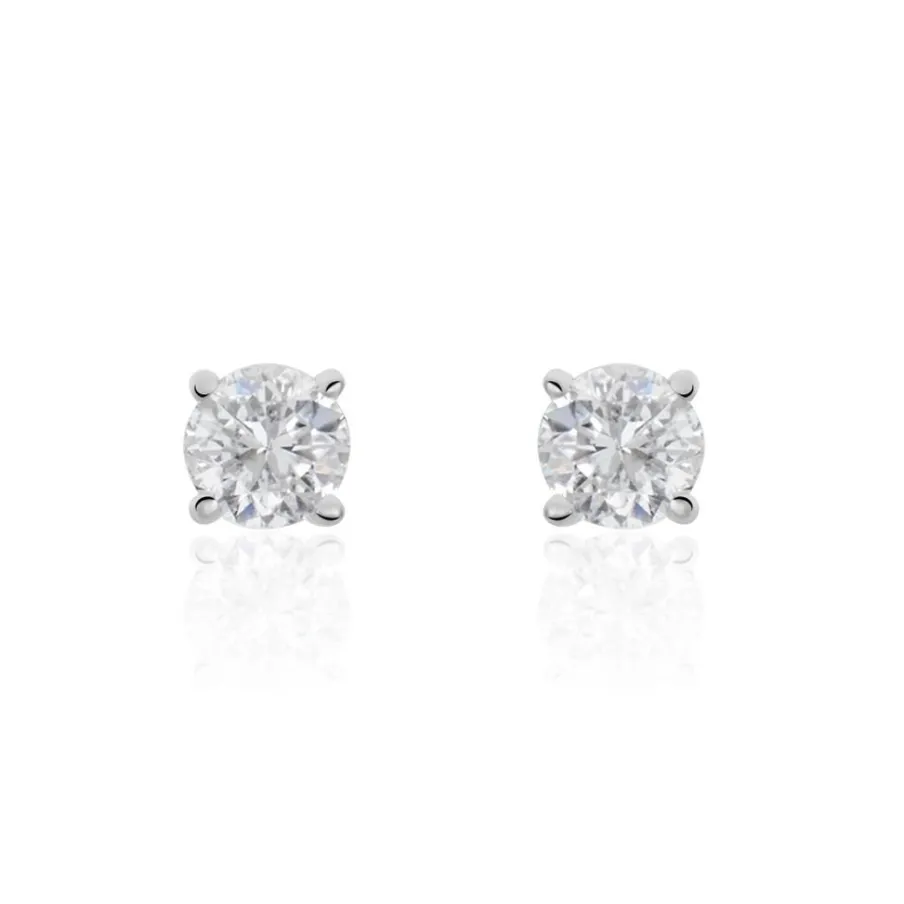 Boucles D’oreilles Or Blanc 375/1000 Puces Diamants 0.30cts Sertis 4 Griffes