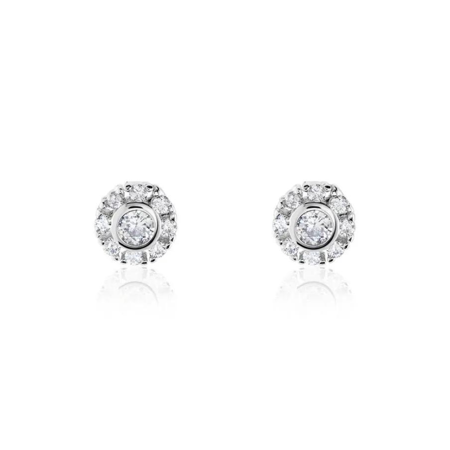 Boucles D’oreilles Puces Argent Blanc 925/1000 Oxydes De Zirconium Sertis 2 Griffes