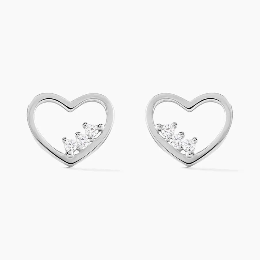Boucles D’oreilles Puces Argent Blanc 925/1000 C艙urs Sertis Griffes 3 Oxydes De Zirconium