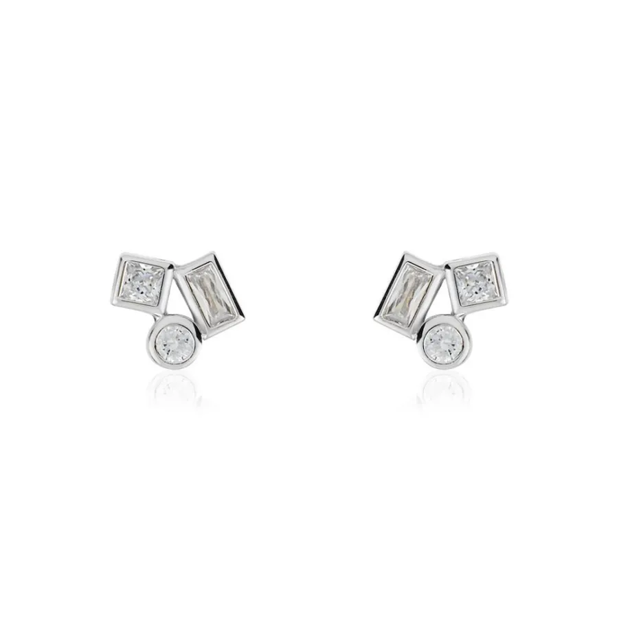 Boucles D’oreilles Puces Argent 925/1000 Formes Géometriques Micro Serti Oxydes De Zirconium