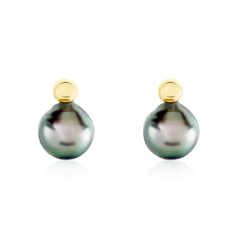 Boucles D’oreilles Or Jaune 375/1000 Perle De Culture Mer Du Sud Tahiti 8/9mm Semi-baroque