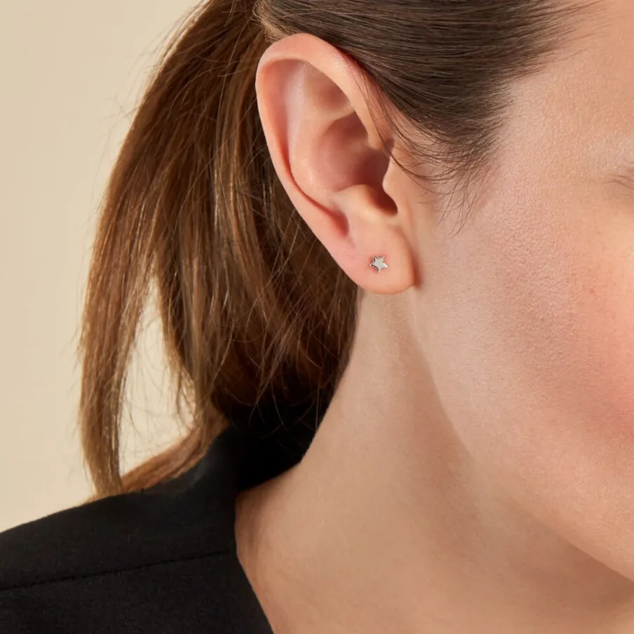 Boucles D’oreilles Puces Argent Blanc 925/1000 étoiles