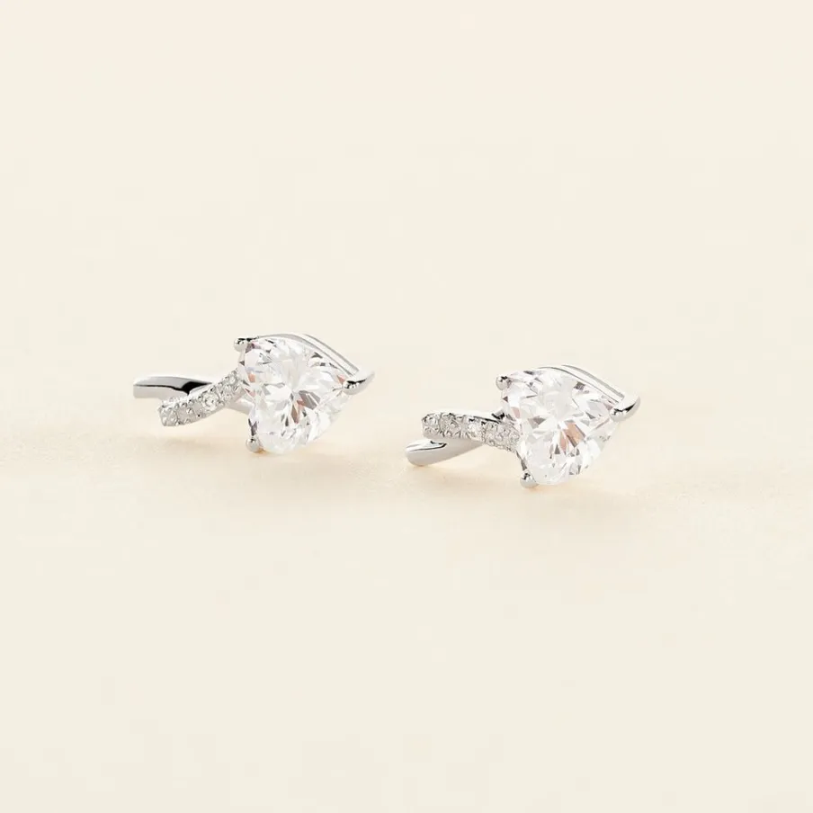 Boucles D’oreilles Pendantes Or Blanc 375/1000 C艙ur Oxydes De Zirconium Blanc Serti Griffes