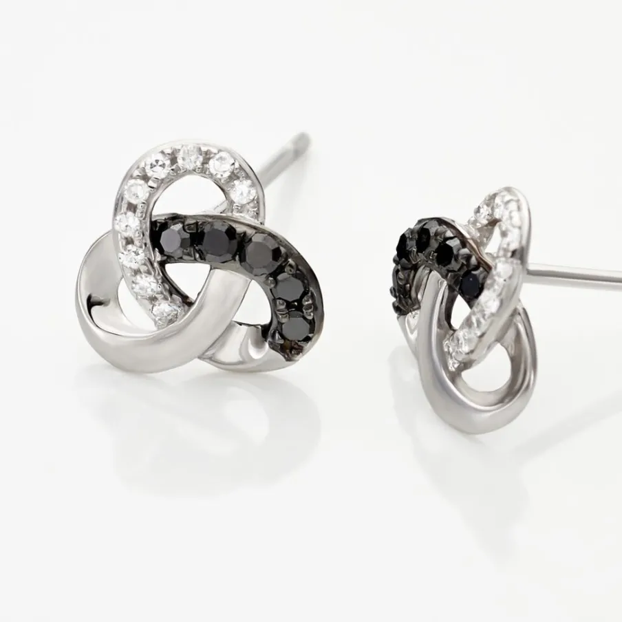 Boucles D’oreilles Or Blanc 375/1000 Constellation Diamants Blancs Et Noirs