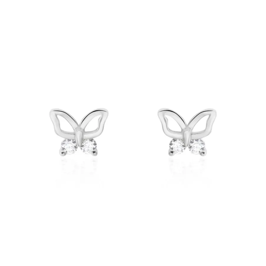 Boucles D’oreilles Puces Argent Blanc 925/1000 Papillons Sertis Griffes Oxydes De Zirconium