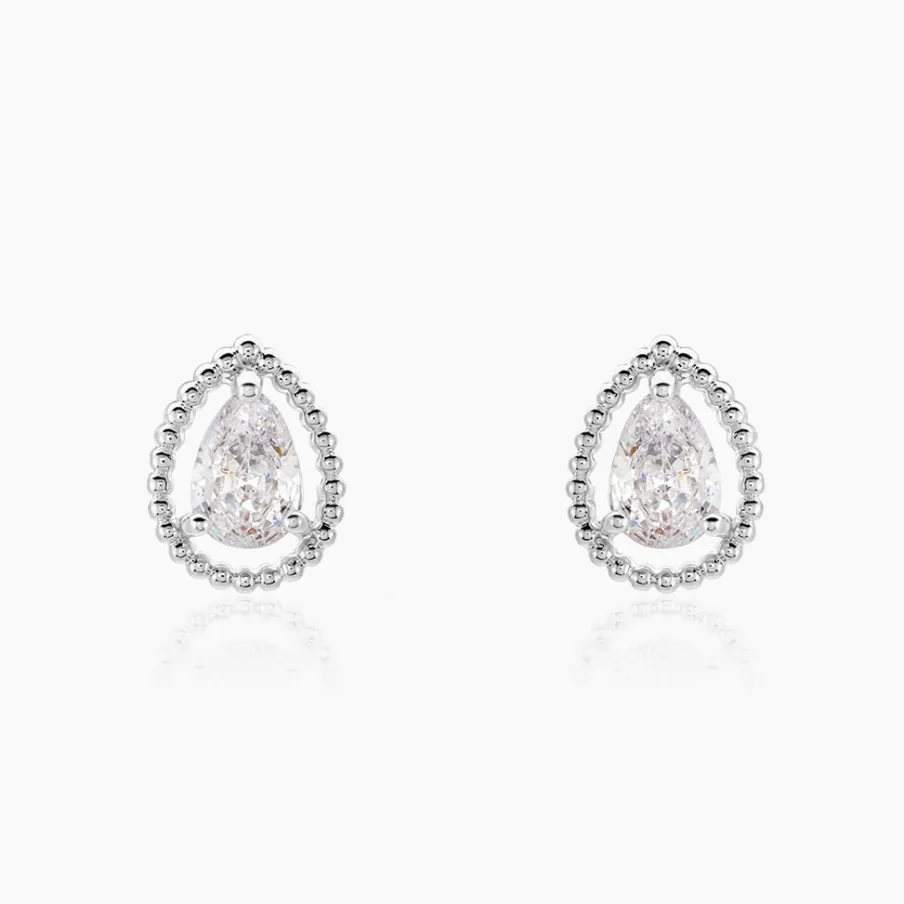 Boucles D’oreilles Puces Argent Blanc 925/1000 Gouttes Oxydes De Zirconium Entourage Perlé