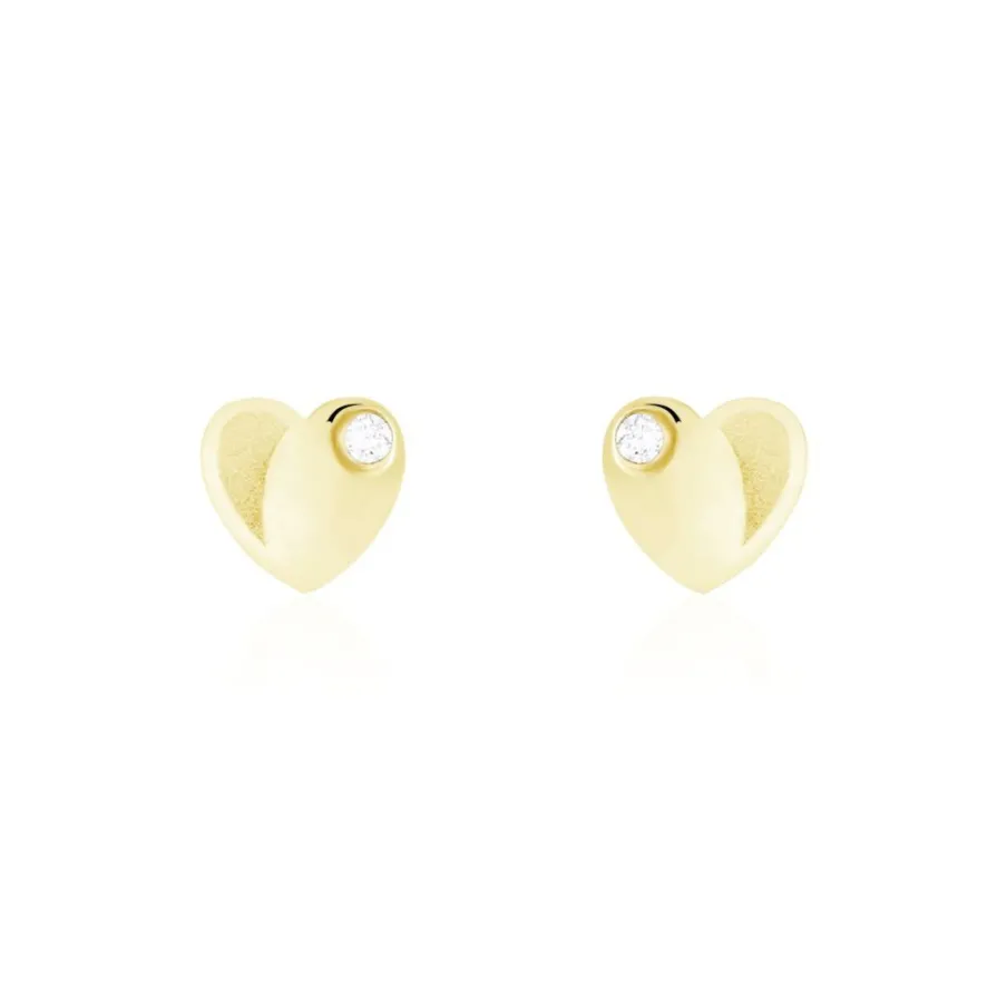 Boucles D’oreilles Puces Or Jaune 375/1000 C艙urs Oxydes De Zirconium