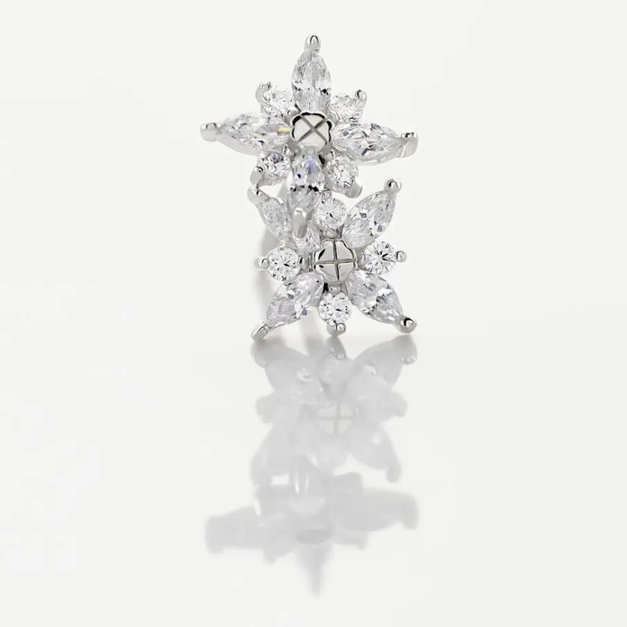 Boucles D’oreilles Puces Argent Blanc 925/1000 Motifs Etoiles Oxydes De Zirconium Taille Ronde Et Taille Navette