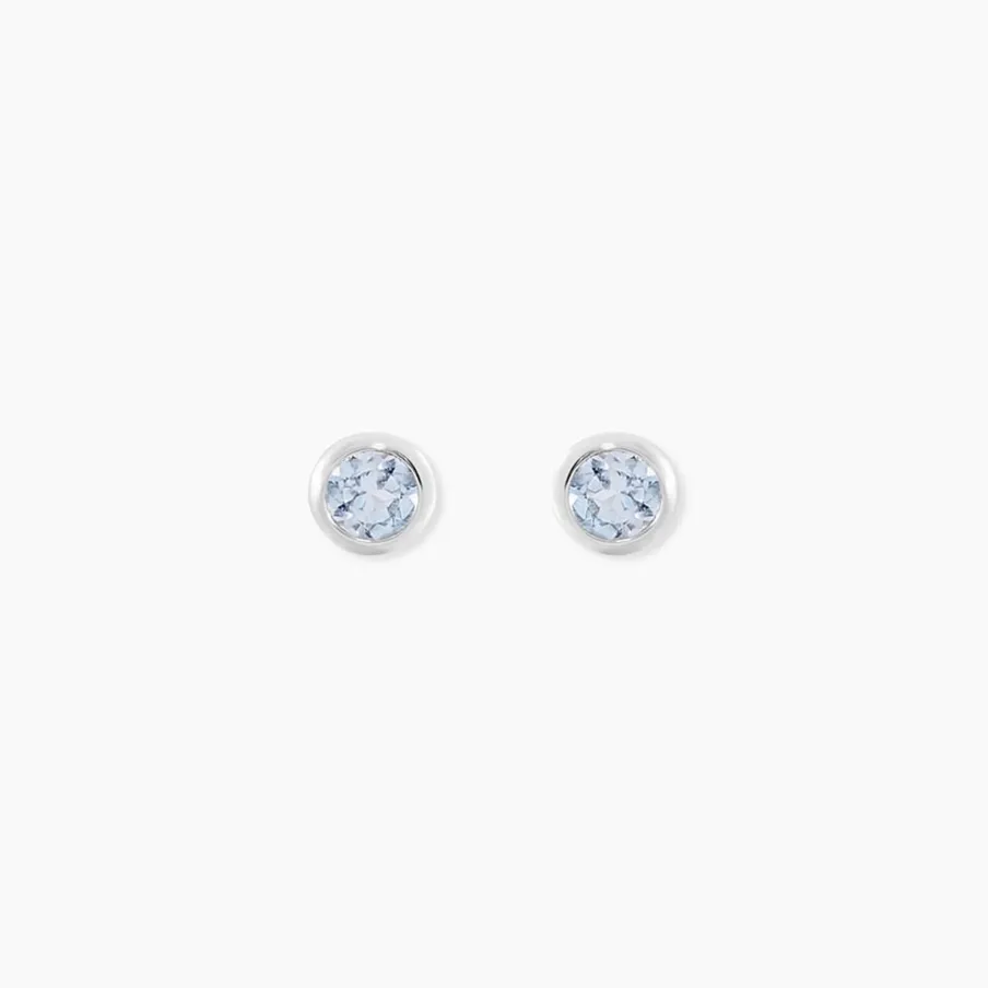 Boucles D’oreilles Puce Or Blanc 375/1000 Topaze Bleue 3mm Pm