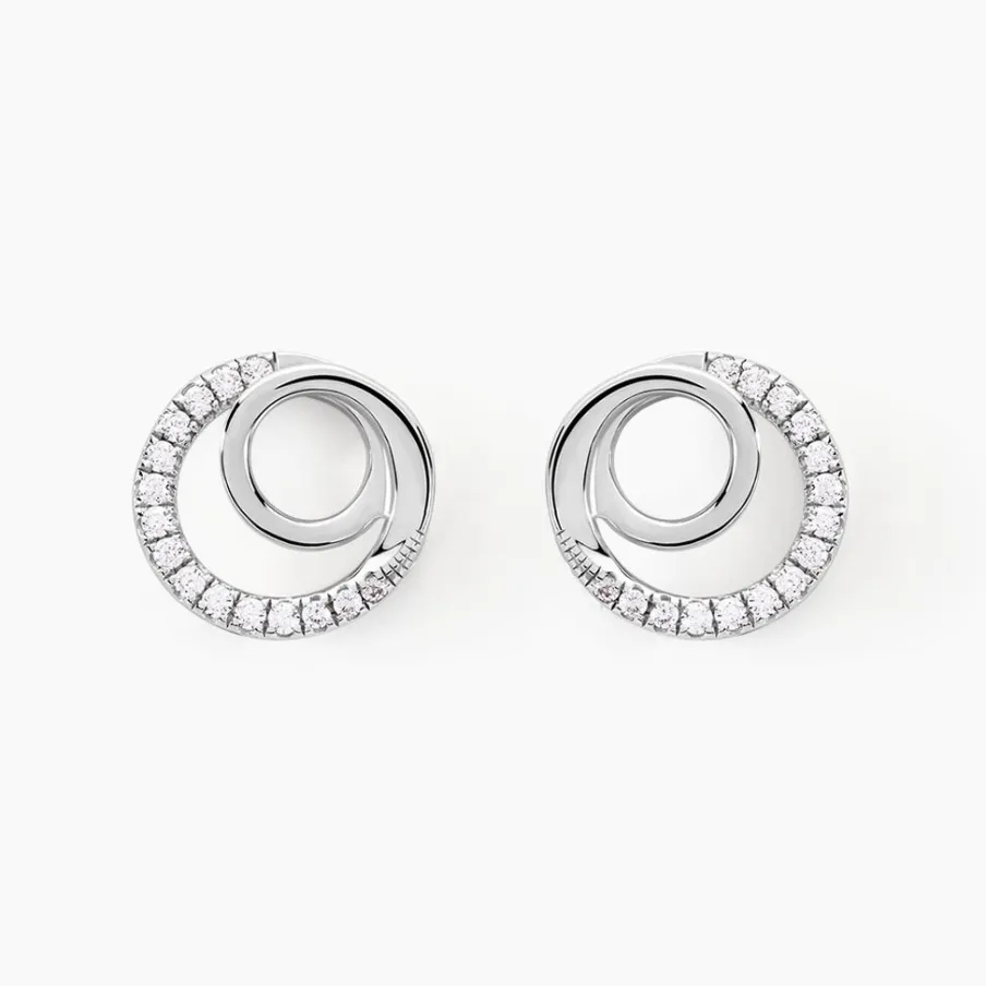 Boucles D’oreilles Puces Argent Blanc 925/1000 Formes Tourbillons Pavages Oxydes De Zirconium