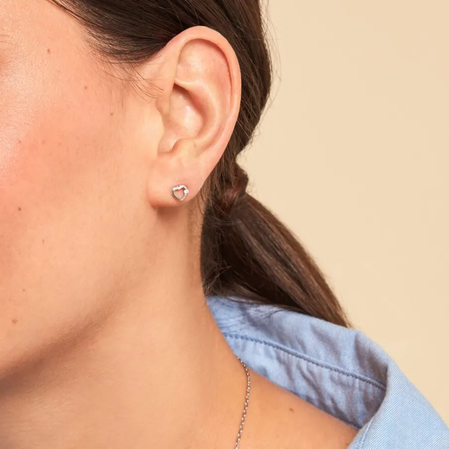 Boucles D’oreilles Puces Argent Blanc 925/1000 C艙urs Oxydes De Zirconium Serti 2 Griffes