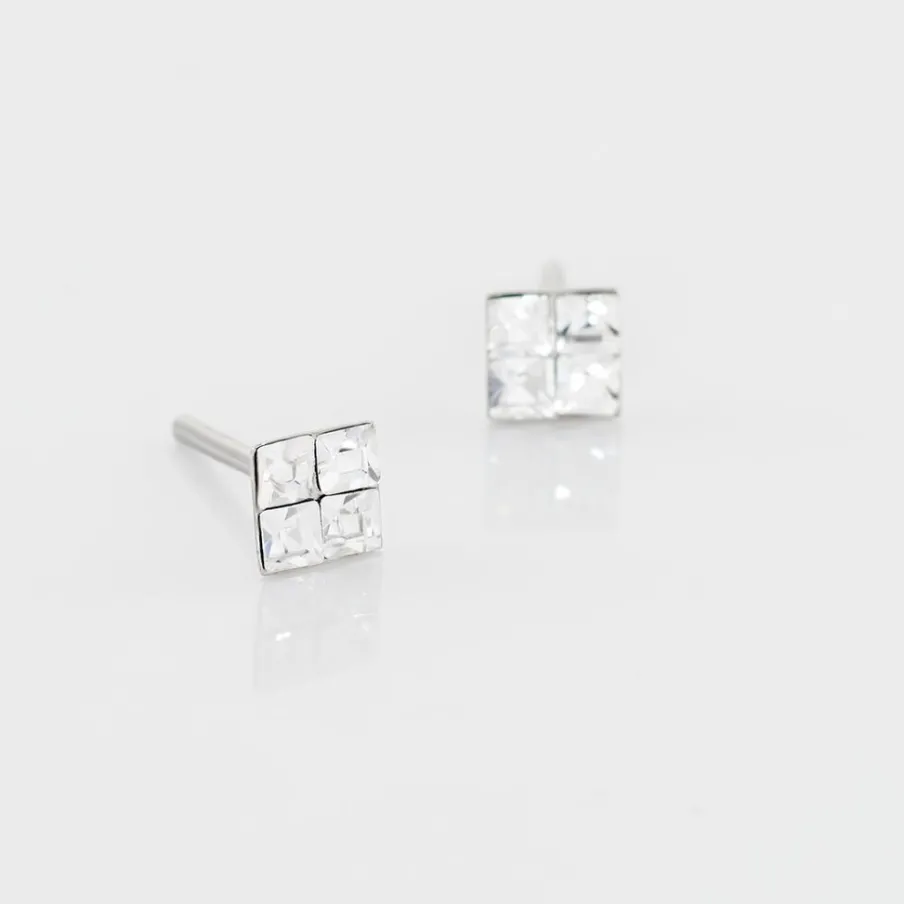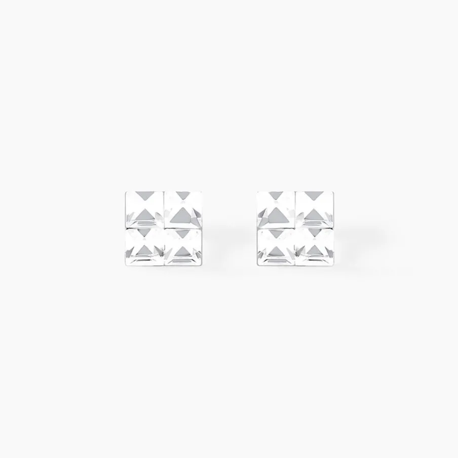 Boucles D’oreilles Puces Argent Blanc 925/1000 Carres 4 Oxydes De Zirconium