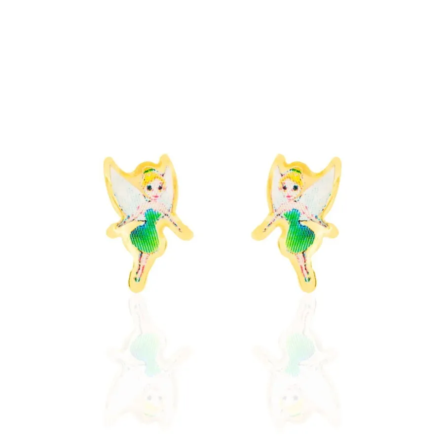 Boucles D’oreilles Or Jaune 375/1000 Puces Fées Vertes