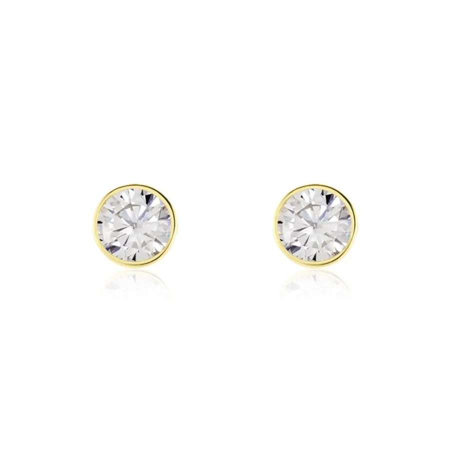 Boucles D’oreilles Puces Or Jaune 375/1000 Oxydes De Zirconium Clos 6mm