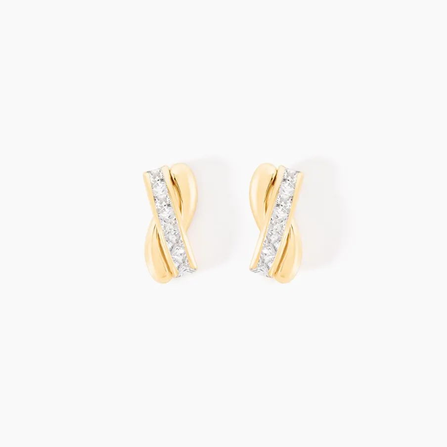 Boucles D’oreilles Puces Or Jaune 375/1000 Formes Croisées Oxydes De Zirconium Serti Rail