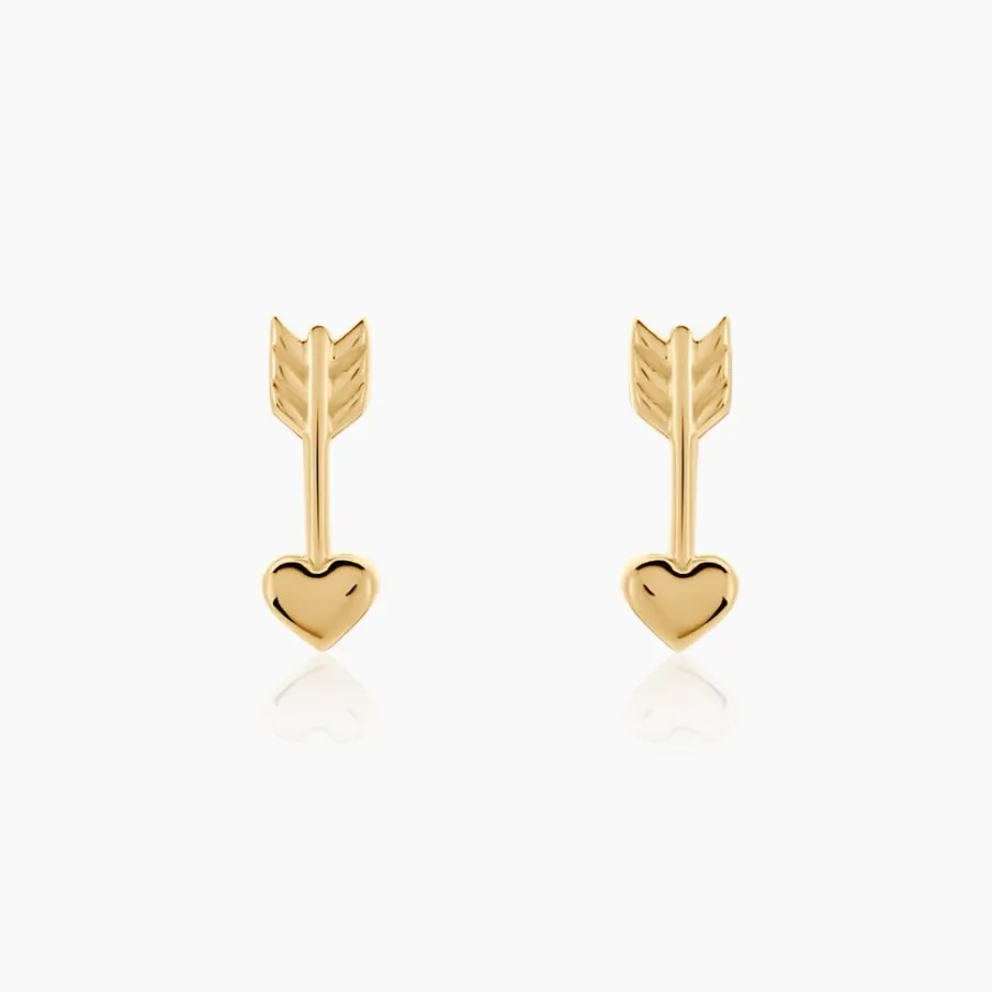 Boucles D’oreilles Puces Plaqué Or Jaune Flèches Forme C艙ur