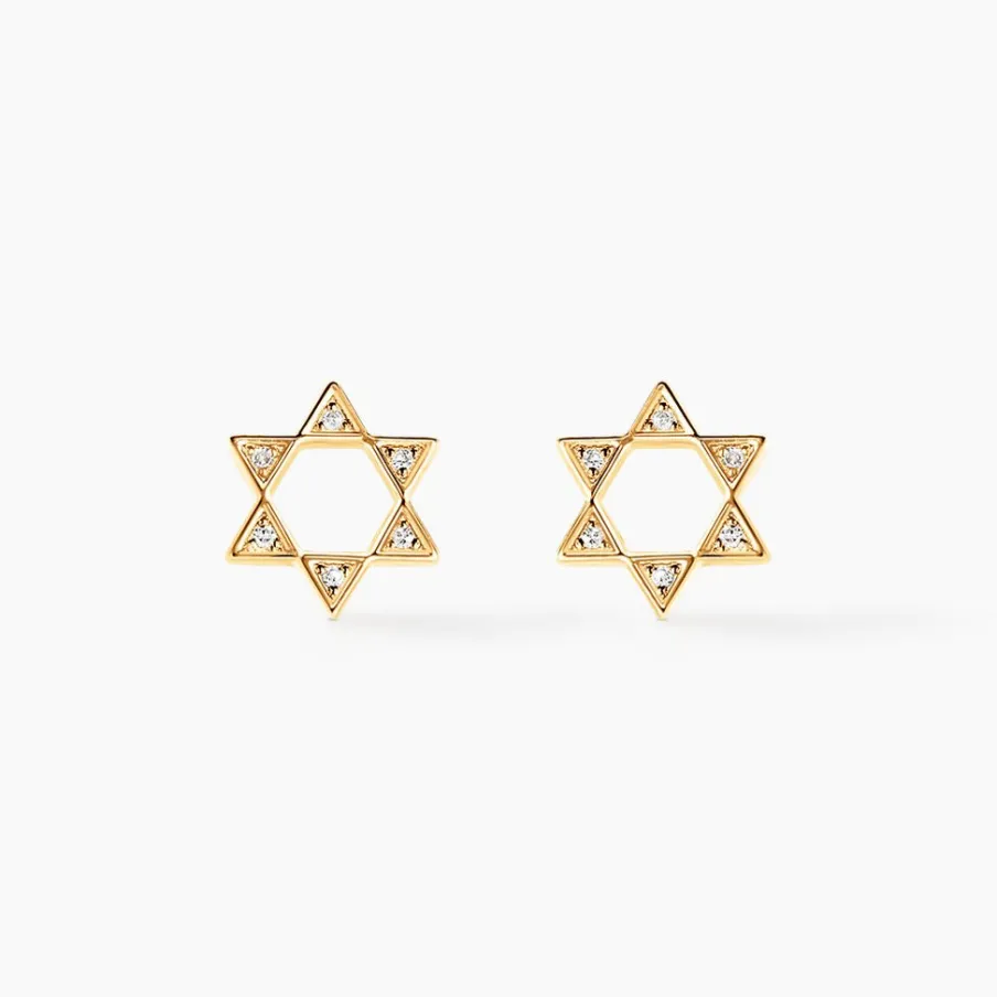 Boucles D’oreilles Puces Or Jaune 375/1000 Etoile De David Pavage Diamants
