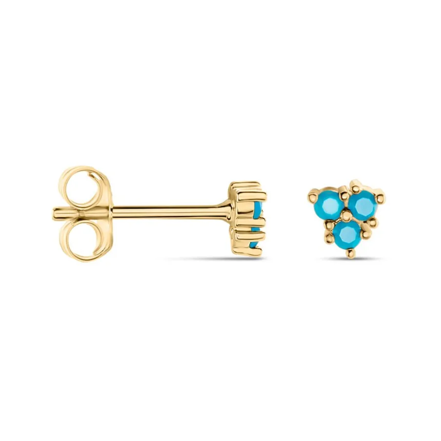 Boucles D’oreilles Puces Plaqué Or Jaune Trio Pierres De Synthese Turquoise