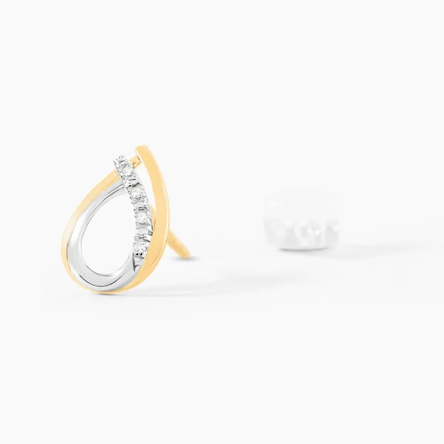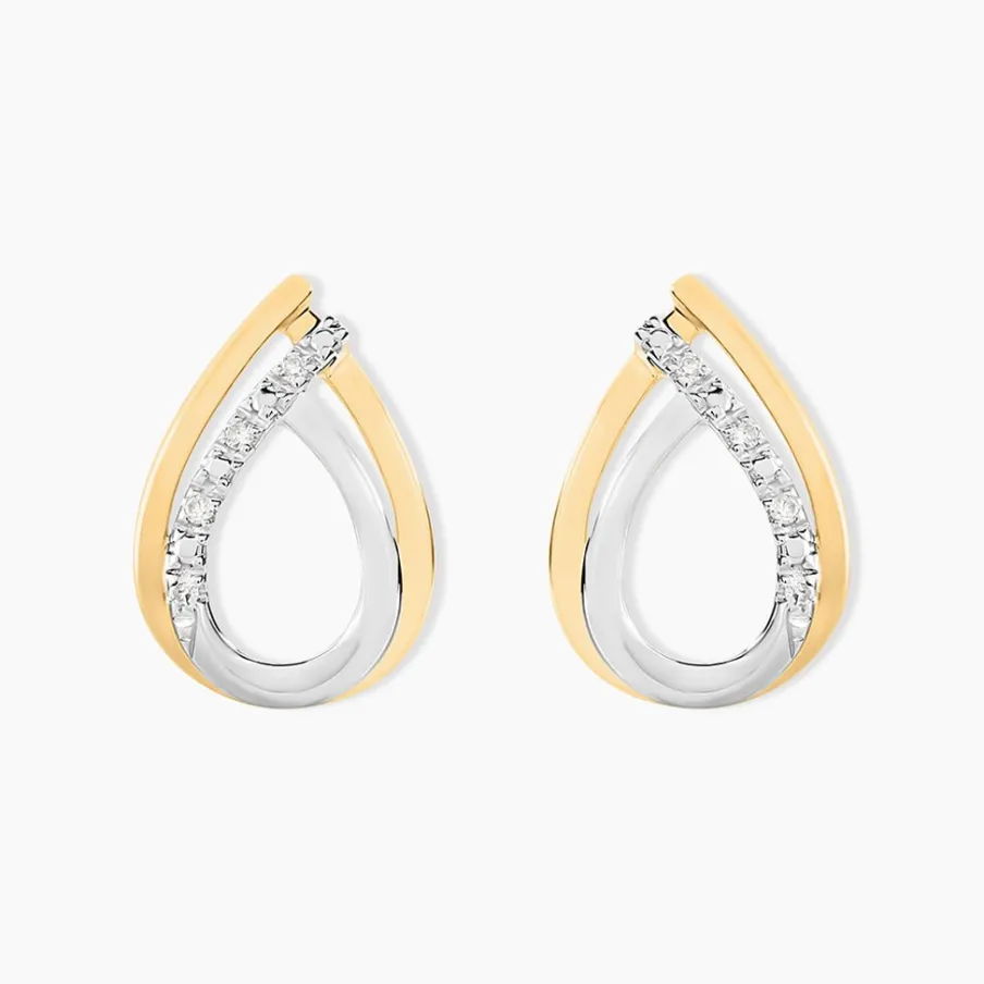 Boucles D’oreilles Or Bicolore 375/1000 Gouttes Diamants