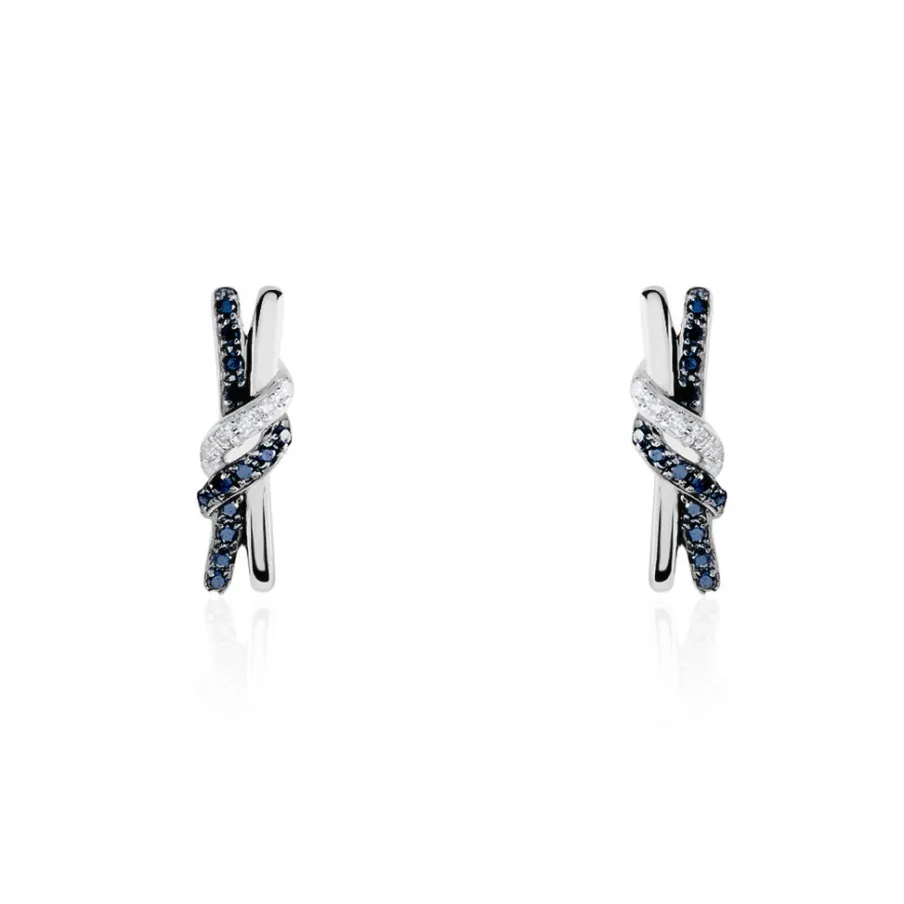 Boucles D’oreilles Or Blanc 375/1000 N艙uds Paves Diamants Blancs Et Diamants Noirs