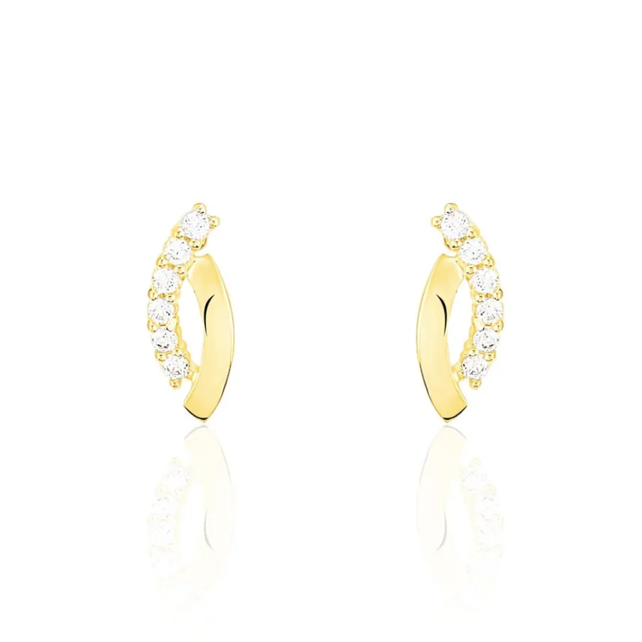 Boucles D’oreilles Puces Or Jaune 375/1000 Formes Gouttes Ajourées Oxydes De Zirconium