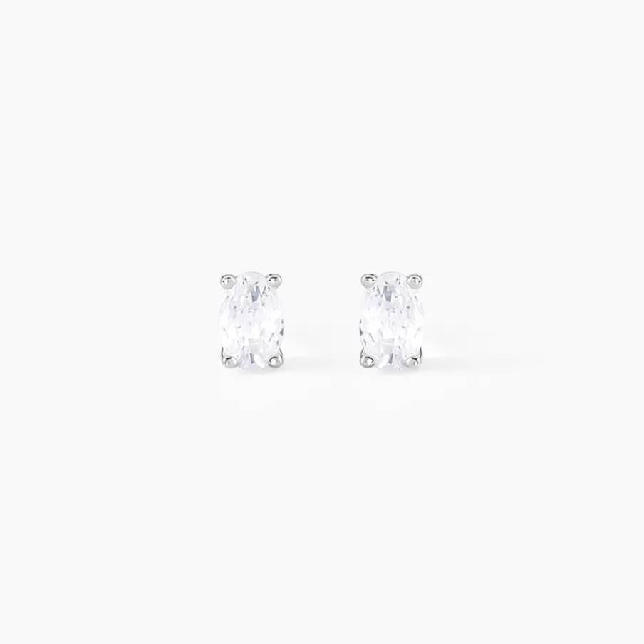 Boucles D’oreilles Puces Argent Blanc 925/1000 Puces Oxydes De Zirconium Formes Ovales 4x6mm