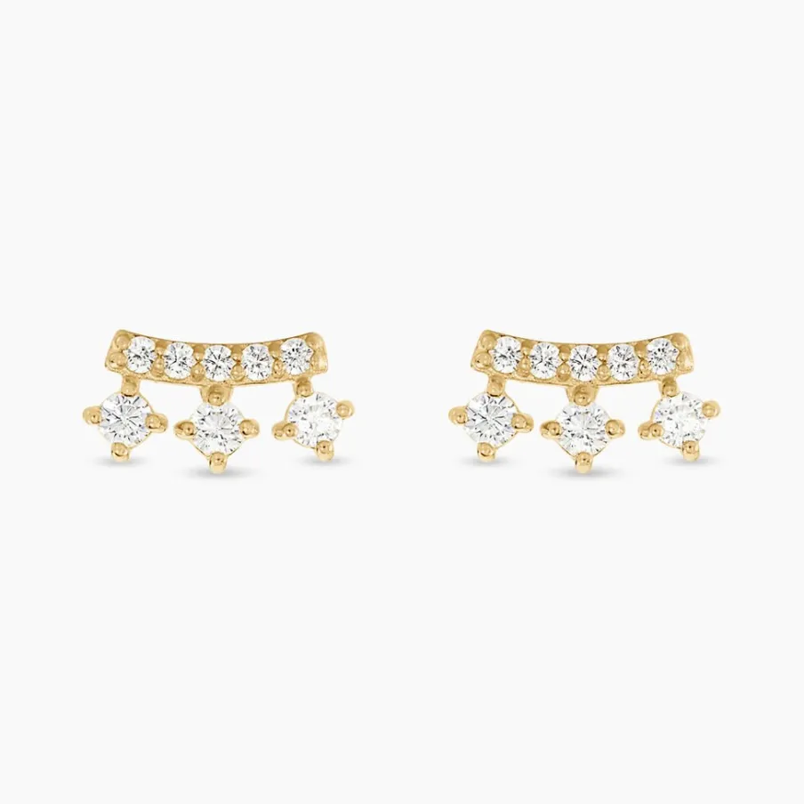 Boucles D’oreilles Puces Or Jaune 375/1000 Barette Oxydes De Zirconium Blanc Serti Griffes