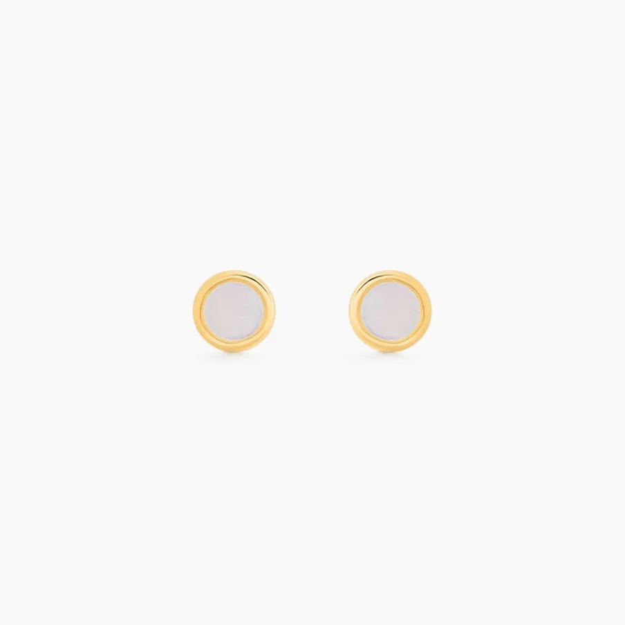 Boucles D’Oreilles Puces Or Jaune 375/1000 Cercle Nacre Serti Clos 4Mm