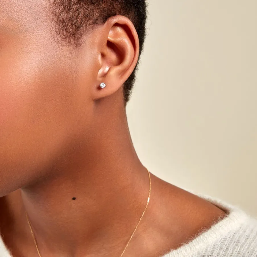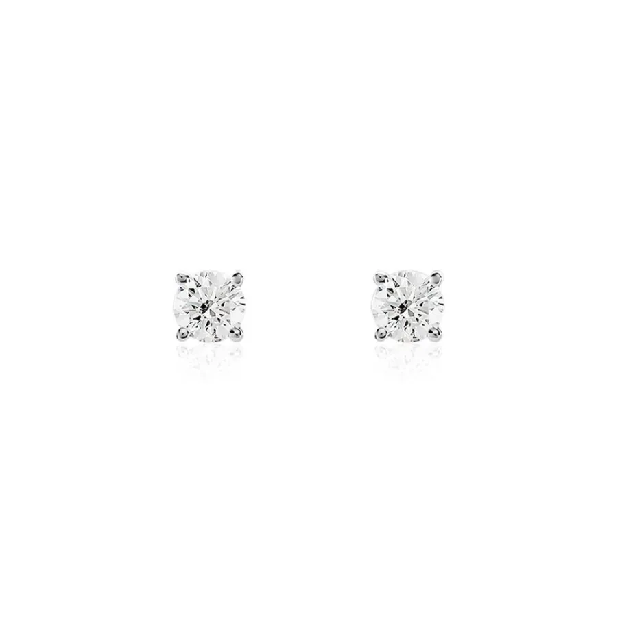Boucles D’oreilles Or Blanc 750/1000 Puces Diamants 0.30cts Sertis 4 Griffes