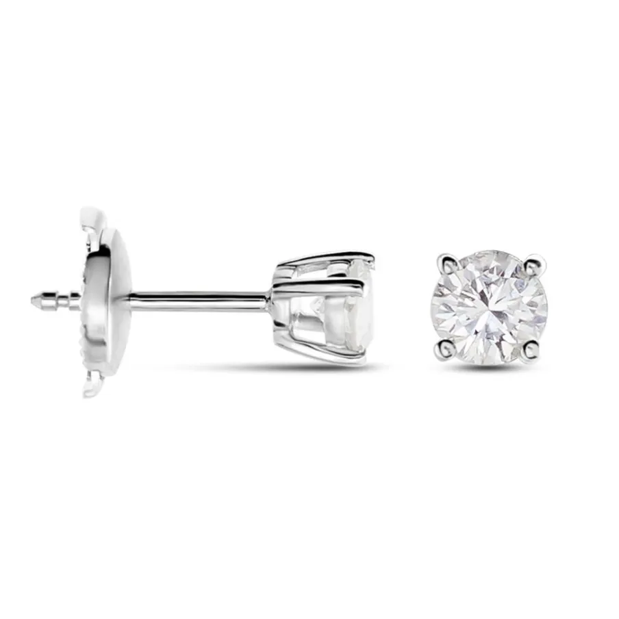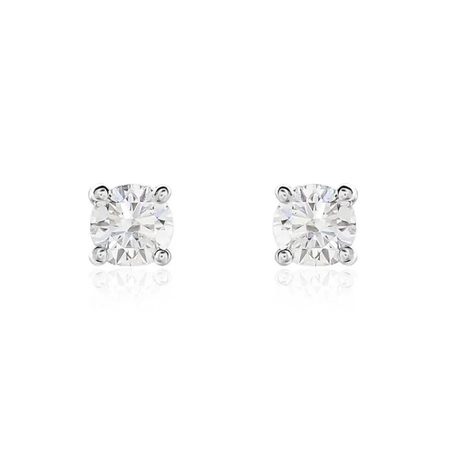 Boucles D’oreilles Puces Or Blanc 750/1000 Puces Diamants 0.40cts Sertis 4 Griffes Fermoirs Securise