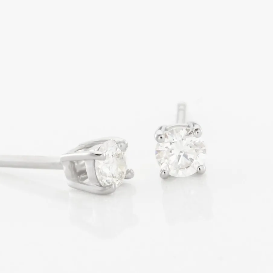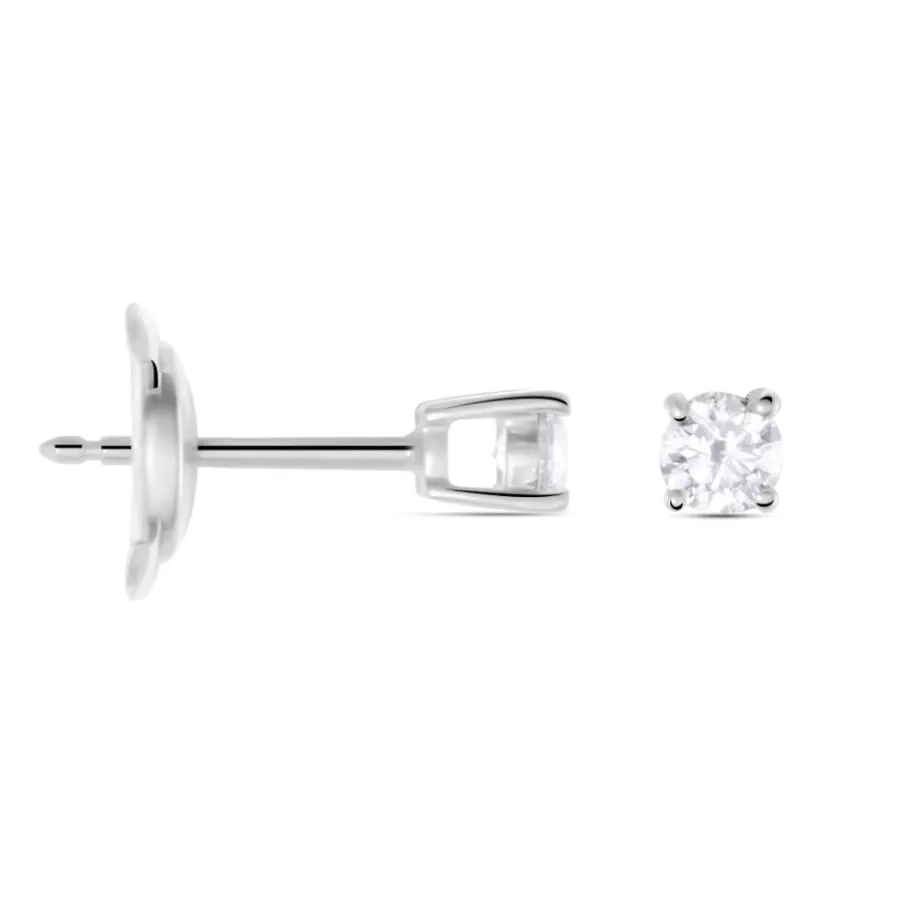 Boucles D’oreilles Or Blanc 750/1000 Puces Diamants 0.30cts Sertis 4 Griffes