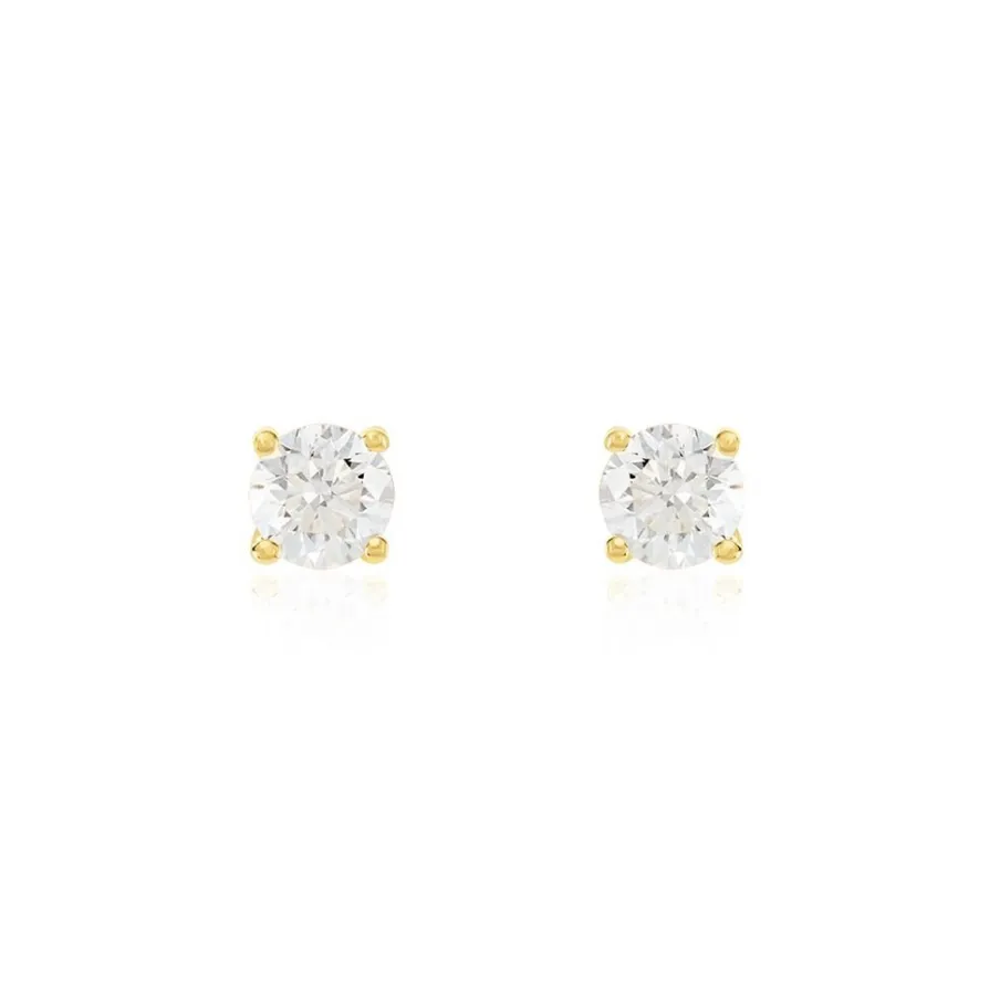 Boucles D’oreilles Or Jaune 750/1000 Puces Diamants 0.50cts Sertis 4 Griffes
