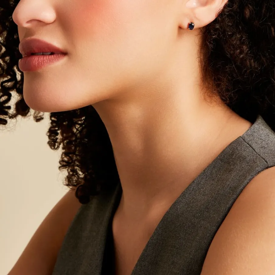 Boucles D’oreilles Puces Or Jaune 375/1000 Saphir Oval Serti Griffes 1.18ct