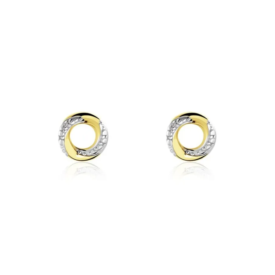 Boucles D’oreilles Puces Or Jaune 375/1000 Formes Cercles Diamants