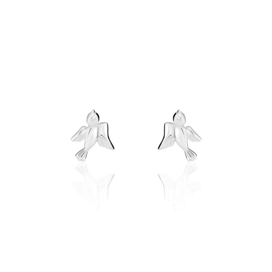 Boucles D’oreilles Puces Argent Blanc 925/1000 Oiseaux