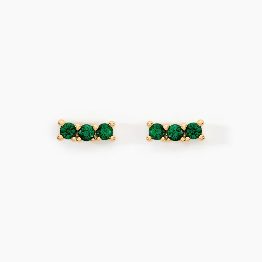 Boucles D’oreilles Puces Plaqué Or Jaune Barrettes Spnielles Verts