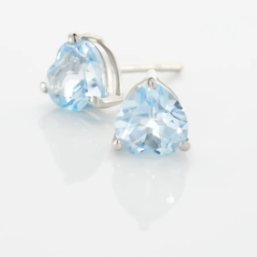Boucles D’oreilles Or Blanc 375/1000 Topazes Bleues C艙urs
