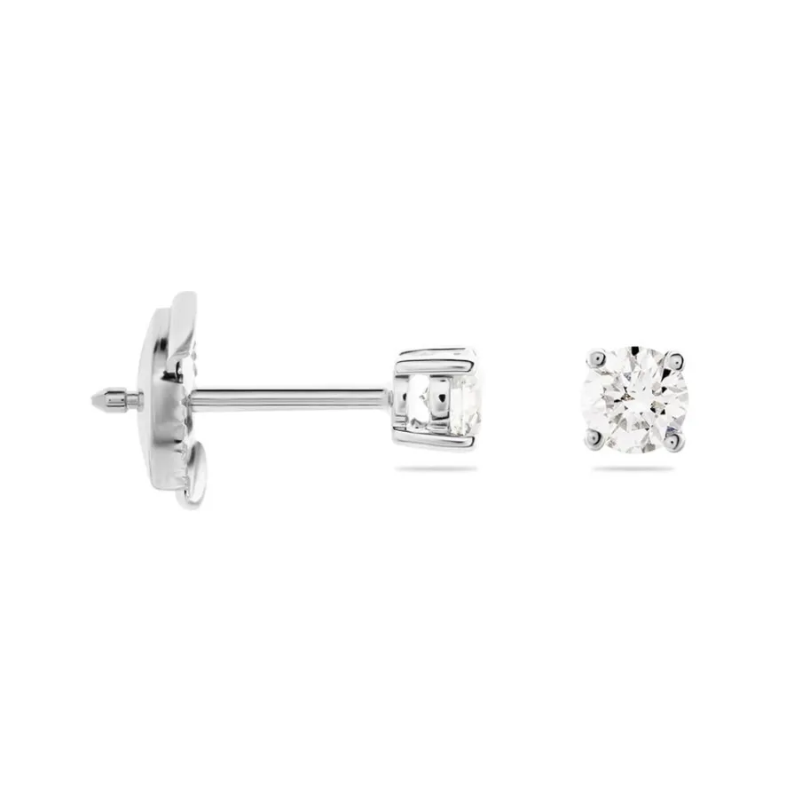 Boucles D’oreilles Platine 950/1000 Puces Diamants 0.30cts Sertis 4 Griffes Systemes Alpas