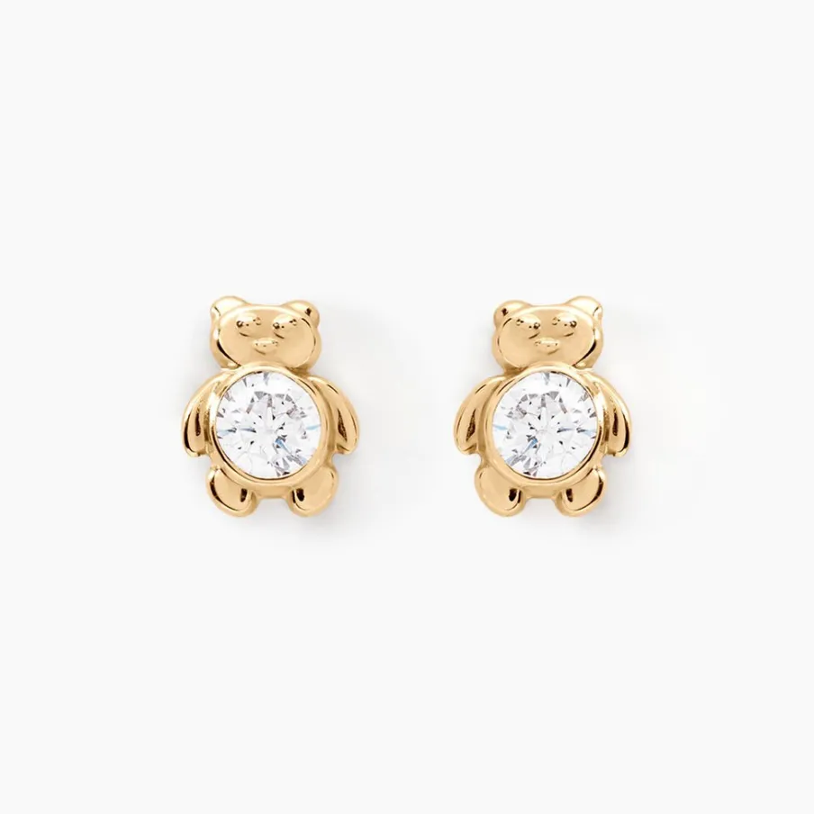 Boucles D’oreilles Puces Or Jaune 375/1000 Oursons Oxyde De Zirconium