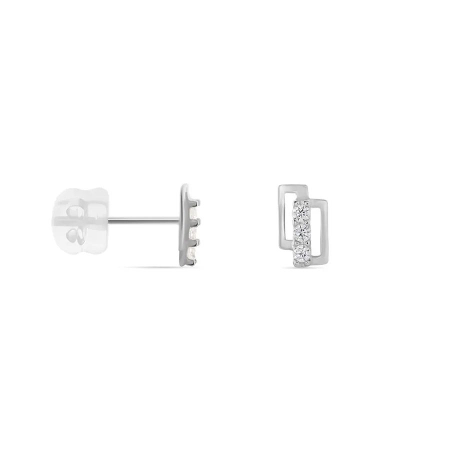 Boucles D’oreilles Or Blanc 375/1000 Avec Barrette Oxydes De Zirconium