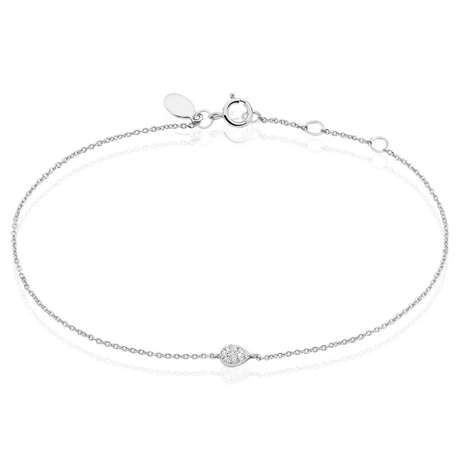 Bracelet Or Blanc 375/1000 Forme Goutte Pavage Diamants 18cm
